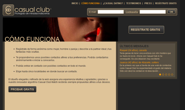 ¿Eres una persona con una relación pero no estás satisfecho? ¿Buscas contactos para sexo real? Pues Casual Club puede ser lo que buscas. La discrección es la principal característica de este portal porque hay que tener en cuenta que sus usuarios son gente como tú, gente que quieren huir de la monotonía y que buscan emociones nuevas.